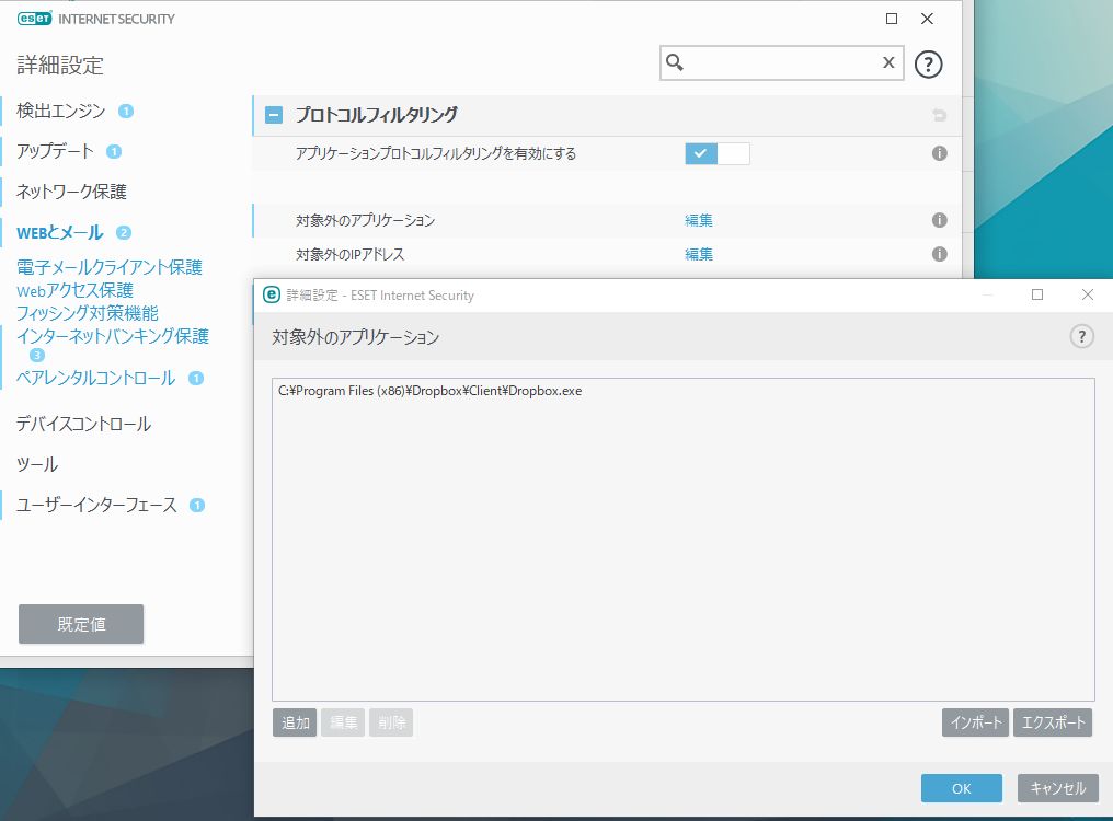 ESET Internet Securityを入れている環境でDropboxがエラーで同期できなくなる
